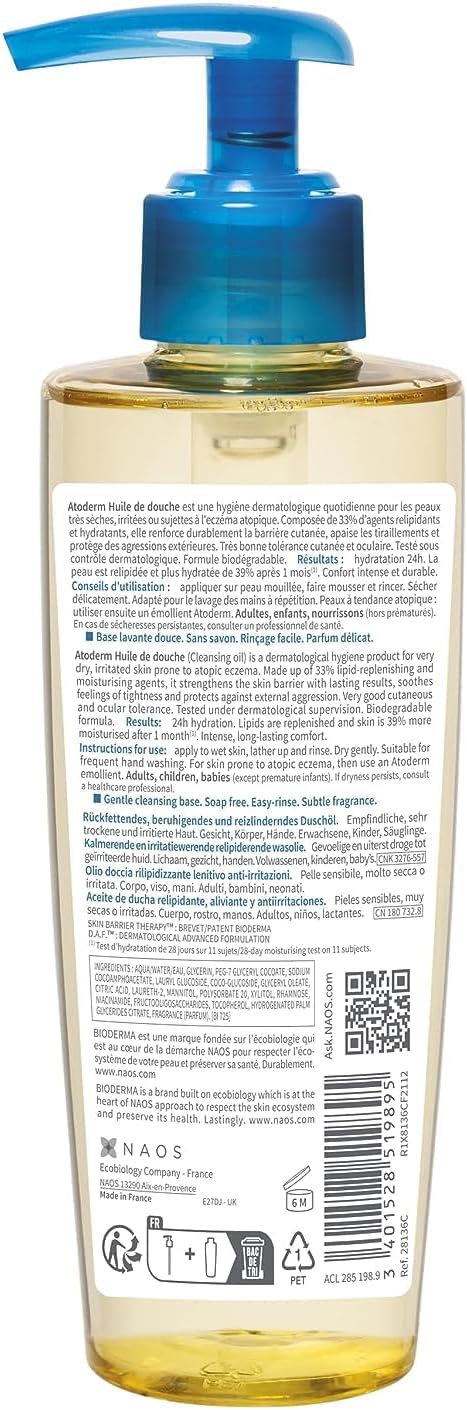 Este óleo de banho é formulado para peles secas, muito secas ou sensibilizadas, proporcionando limpeza suave e hidratação duradoura. Sua fórmula contém ingredientes como biolipídios à base de plantas, niacinamida e a patente Skin Barrier Therapy™, que ajudam a restaurar e proteger a barreira cutânea, acalmando a pele desde o banho.