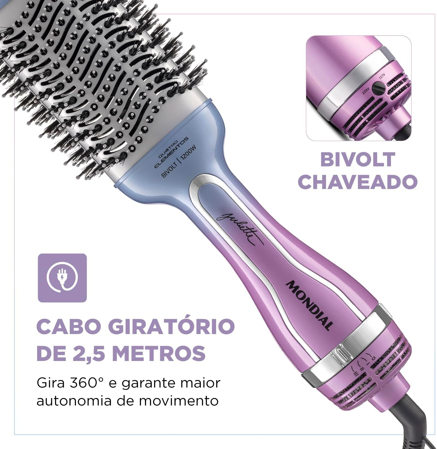 70% OFF 🎉Escova Secadora By Juliette, Mondial, Azul/Rosa, 1200W, Bivolt – ES-JU-03