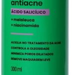 - limpador antiacne promove uma limpeza profunda, sem ressecar e sem sulfatos. com Ácido Salicílico, Melaleuca, Niacinamida que contribuem para prevenção de cravos e espinhas.