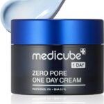 O Medicube Zero Pore One-Day Cream é um creme facial desenvolvido para reduzir visivelmente os poros dilatados e controlar o excesso de oleosidade. Sua fórmula contém pantenol, que fortalece a barreira de hidratação da pele; ácido salicílico (BHA 0,1%), que ajuda a reduzir cravos e oleosidade; e niacinamida, que melhora a textura da pele e reduz a vermelhidão. Estudos clínicos demonstraram que o uso do produto pode diminuir o tamanho, volume e profundidade dos poros em até 55,1% e reduzir cravos e espinhas em 21,3% após apenas uma aplicação.
