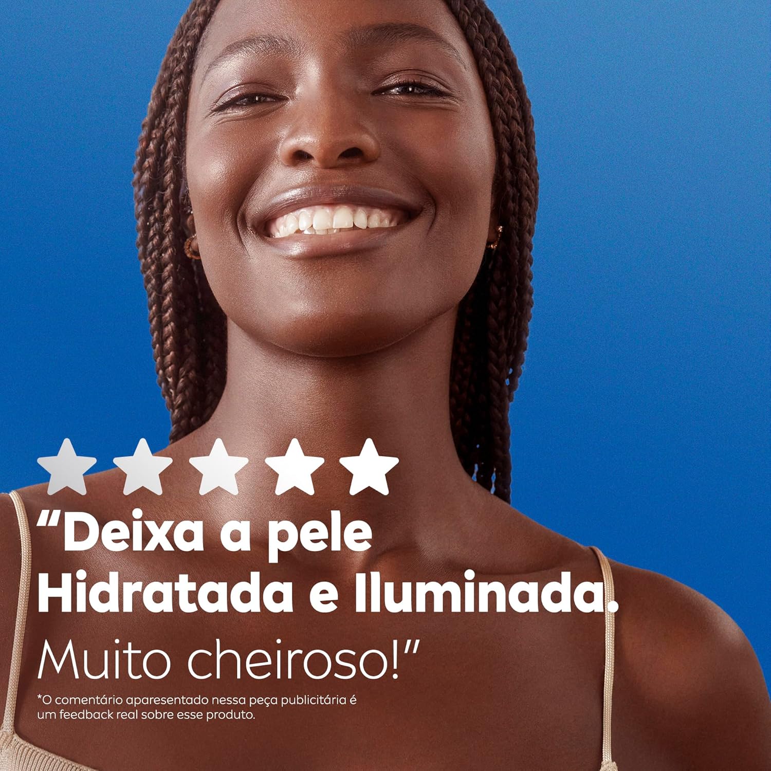 O que é? Hidratante corporal desenvolvido especialmente para a beleza da pele negra. Ajuda na reparação das áreas ressecadas e deixa a pele com um brilho natural e saudável. Para pele secas a extrassecas. Para que serve o Hidratante Desodorante Beleza Radiante Cuidado Intenso? Formulado com 5 óleos naturais e vitaminas, promove 48h de hidratação profunda além de ajudar na redução de estrias em 2 semanas*. *Teste de percepção. Resultados dependem do uso contínuo do produto. Benefícios e diferenciais 48h hidratação profunda Ajuda na redução de estrias em 2 semanas* Alivia a descamação da pele causada pelo ressecamento Fórmula enriquecida com 5 óleos naturais (Abacate, Oliva, Soja, Macadâmia e Amêndoas) & Vitaminas E, B3 e Pro Vit B5 *Teste de percepção. Resultados dependem do uso contínuo do produto. Como usar o Hidratante Desodorante Beleza Radiante Cuidado Intenso? Aplique o produto no corpo duas vezes ao dia, massageando a pele suavemente. Use o produto diariamente para garantir melhores resultados. Uma unidade contém 400ml
