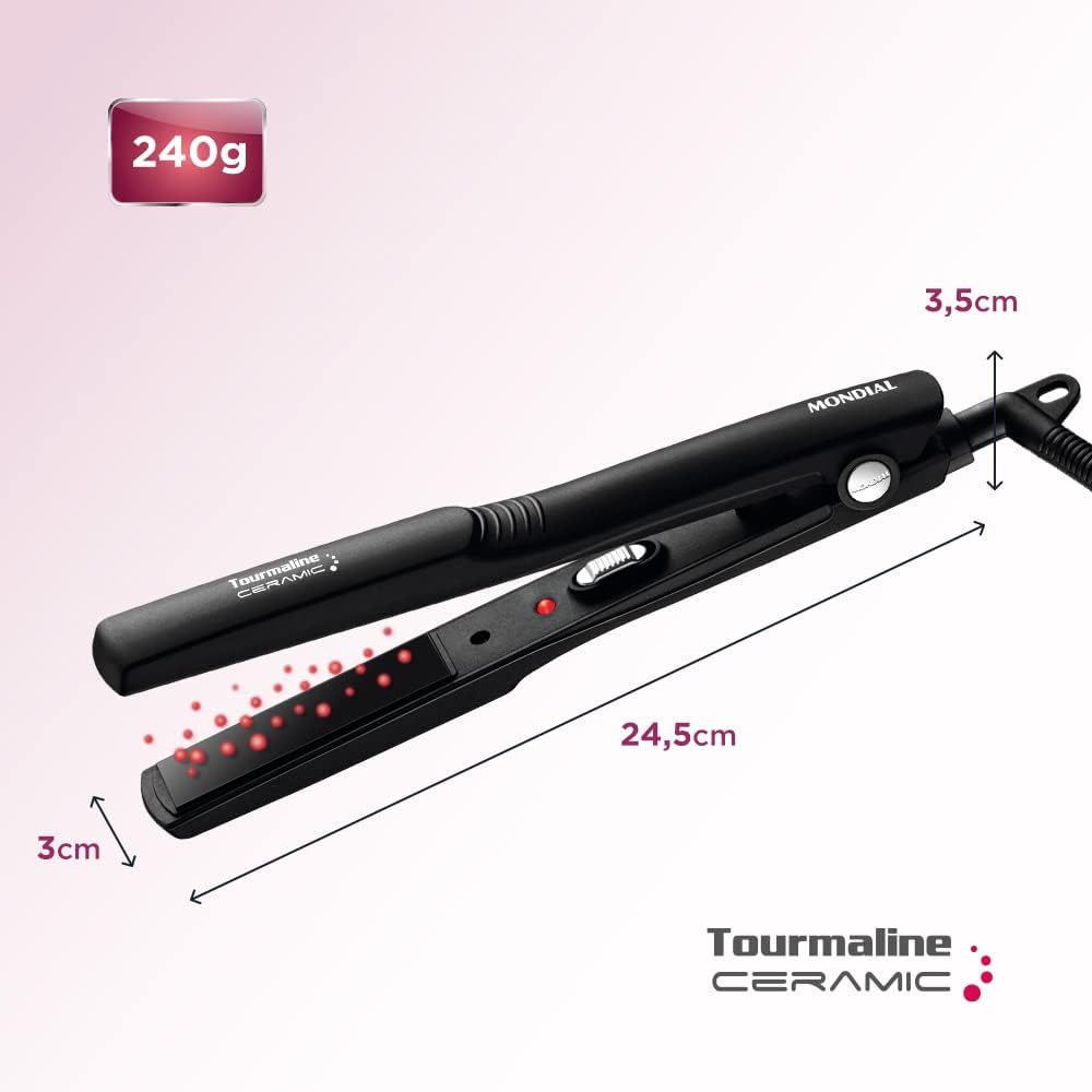 Prancha Alisadora Tourmaline Ceramic, Mondial, Preto, 30W, Bivolt – P-15