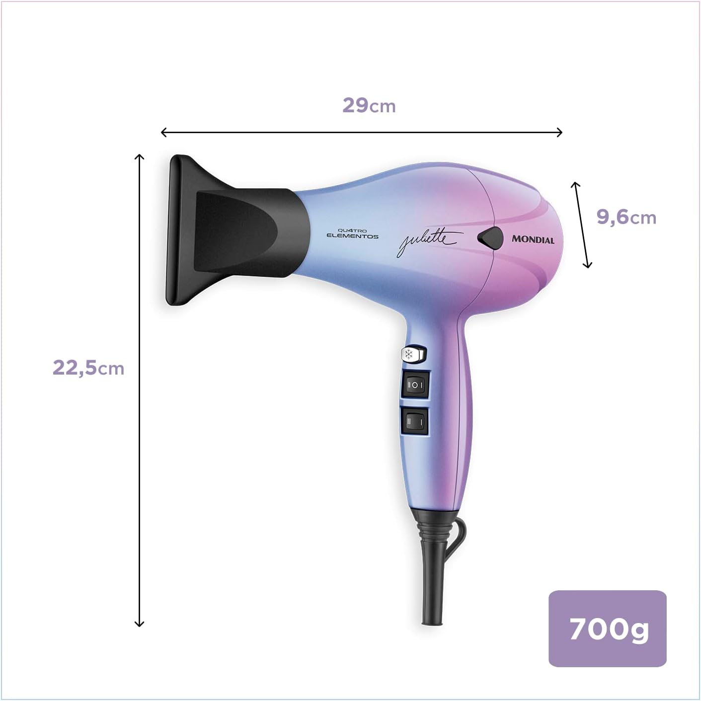 70% OFF 🎉Secador de Cabelo By Juliette, Mondial, Azul/Rosa, 2000W, 110V – SCP-JU-03