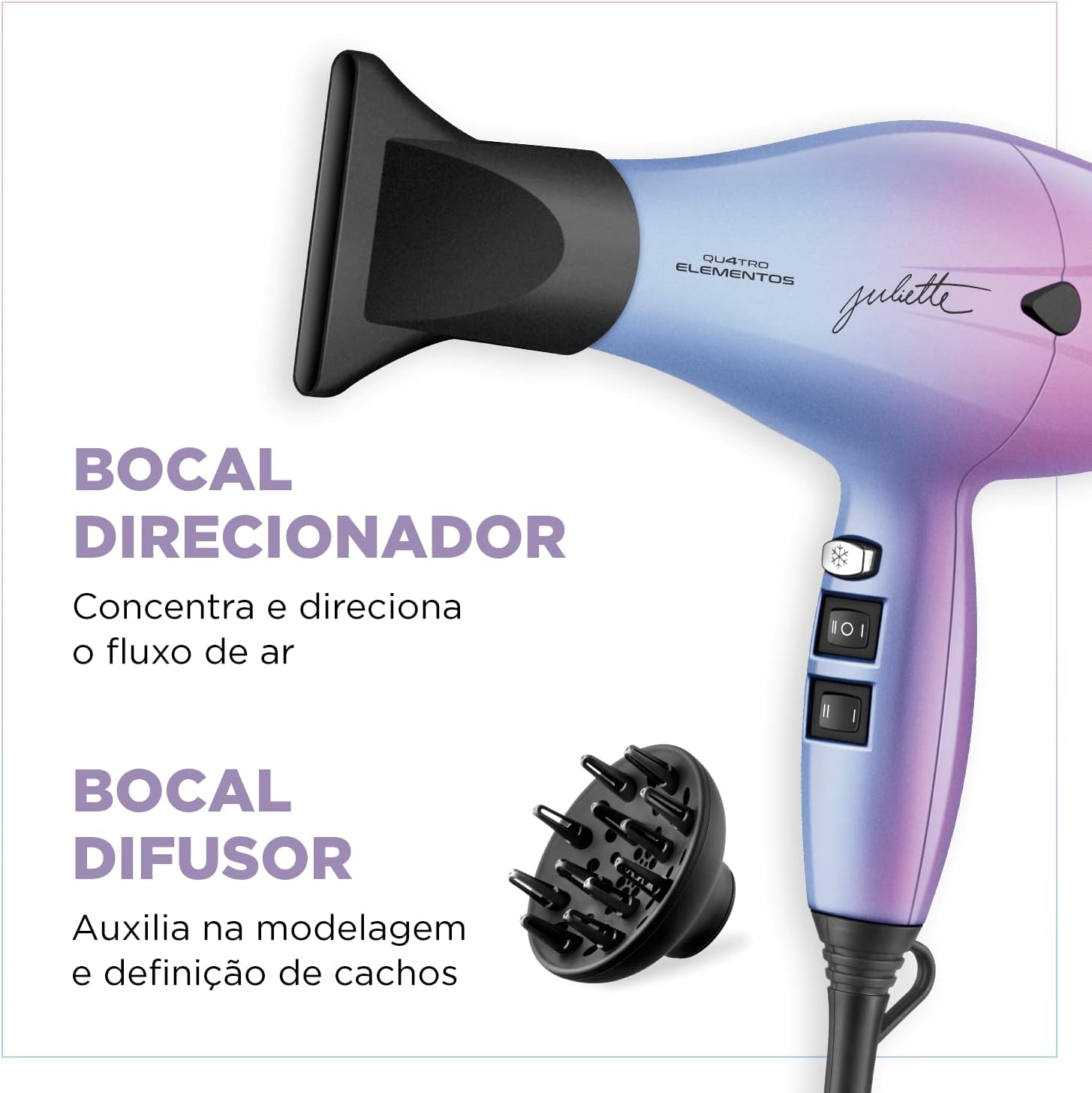 - BOCAL DIFUSOR: Ideal para secar cabelos cacheados, auxiliando na modelagem e definição dos cachos.