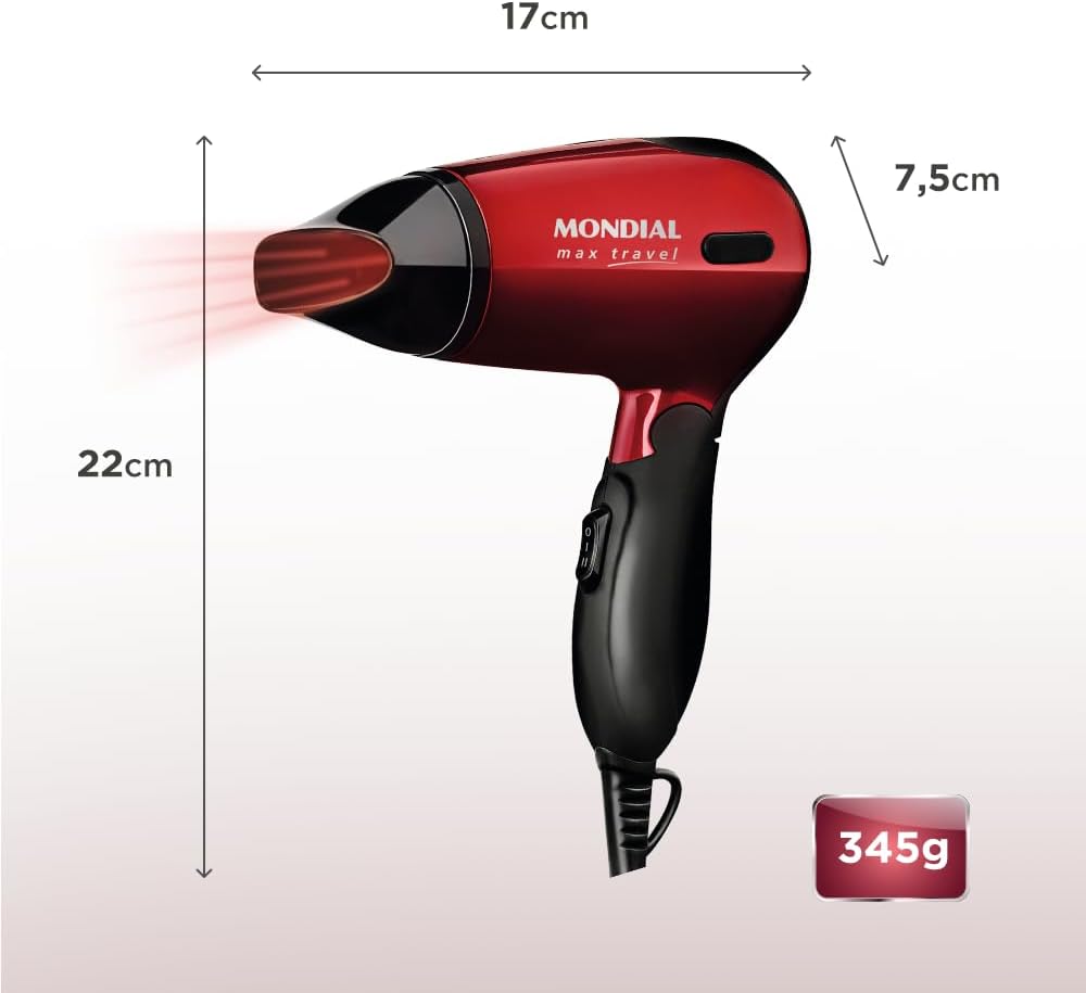Secador Mondial, Max Travel, Bivolt, Preto/Vermelho, 1200W – SC-10